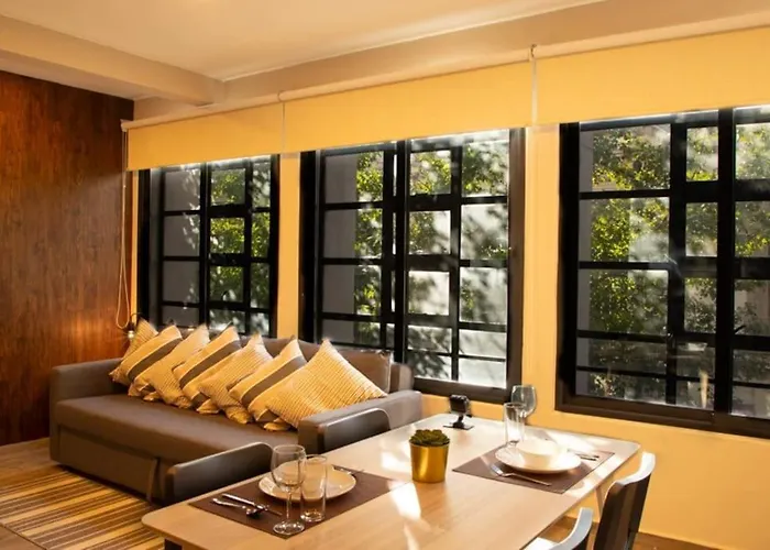 Une cuisine complète est approvisionnée de micro-ondes et d'un réfrigérateur. Des équipements de cuisine tels qu'une cafetière/théière sont fournis pour offrir aux clients une expérience pratique. Le Restaurant Ehden et La Corte Restaurant sont à environ 350 mètres. L'aéroport international Benito-Juárez de Mexico est situé à 10 km, et la gare routière le Museo de la Ciudad est à 300 mètres.